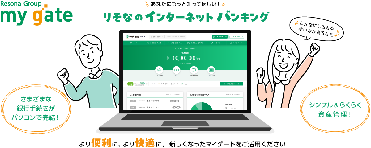 - ※補償については、一定の条件がございます。詳細はマイゲート利用規定やりそなグループWebサイトをご確認ください。