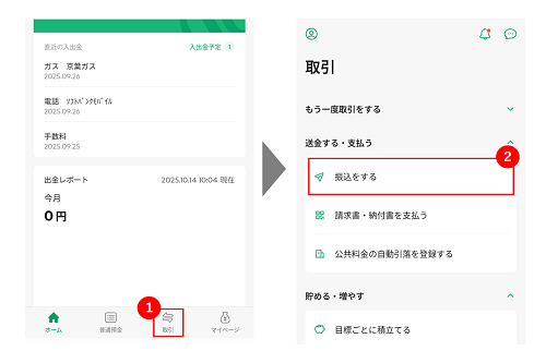 ②「送金する・支払う」の「振込をする」をタップしてください。