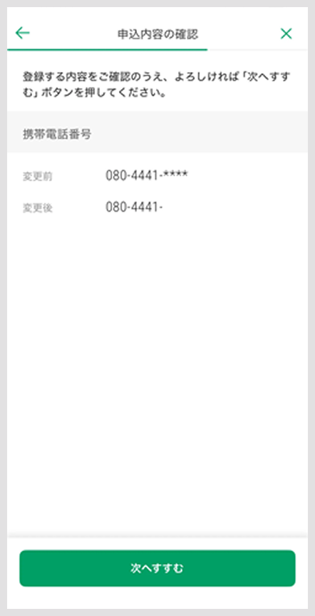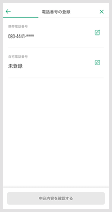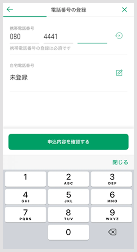 ⑥新しい電話番号を入力し「申込内容を確認する」をタップ