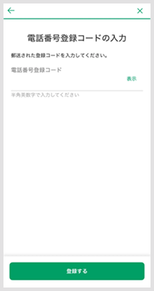 ⑧電話番号登録コードを入力し、「登録する」をタップ