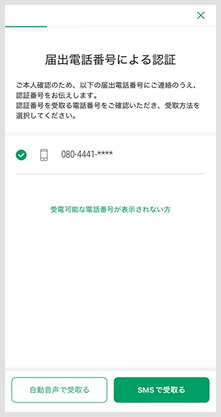 認証画面で使用できない電話番号が表示されている場合、画面下部の「受電可能な電話番号が表示されない方」を選択します。