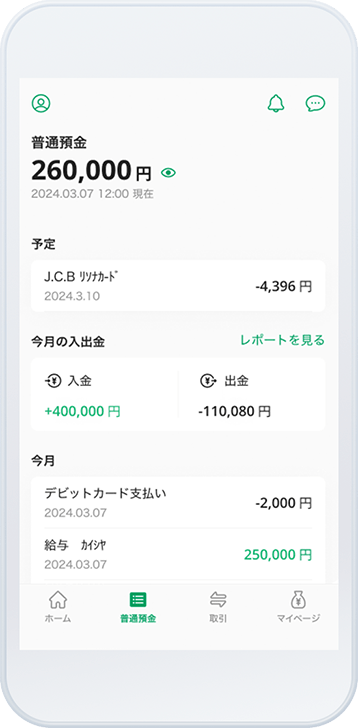 - 引落予定や入出金履歴も
